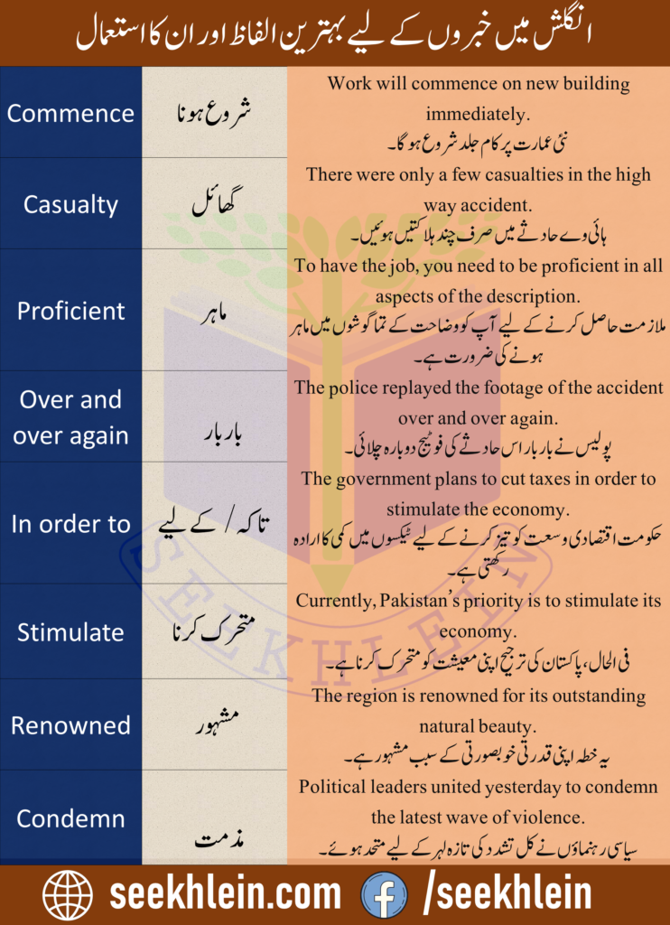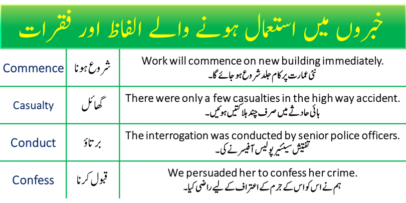 Urdu to English phrases for news