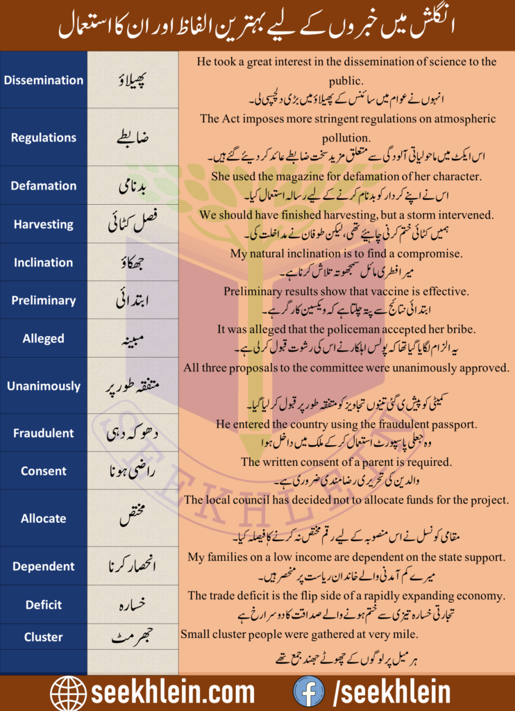 Not only can you improve your English by learning the words used in the news instead , you can use them at different occasions in your life. Learn these English words and practice them in your conversation regularly.