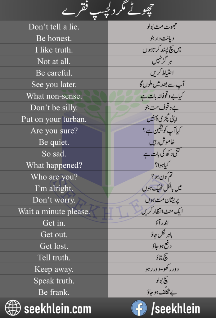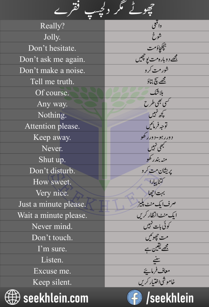 Everyone knows how to write and memorize English, but reluctant to speak English in front of others. And sometimes when you speak English, you don’t remember what to say. So let’s first memorize phrases that are going to come in handy in our daily lives. We start speaking English with these short English Urdu sentences.