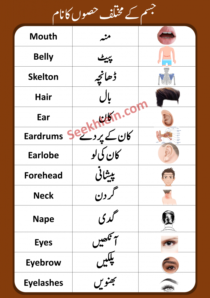 Here in this blog, you are going to learn 49 Parts Of Body Names In Urdu And English. Learn 49 parts of body names in Urdu And English. The human body is made up of different organs. If not a single organ the human body becomes incomplete. Today in this blog I am going to give all the human body parts with English And Urdu Translation. This lesson will cover all human body parts with pictures. In our daily life often need to talk about our body, its parts, and organs.