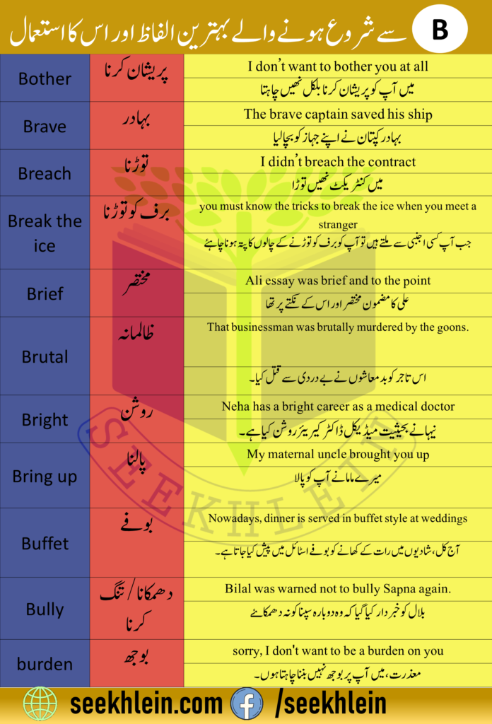 English speaking is really important these days. English considered the official language in almost all the countries of the world. Learning English has become a necessity today. By English learning, you can easily survive in this world. We have come up with some English words and their use that you can use in your daily life conversation. We have brought a collection of B words lists that you can use on any occasion in life.