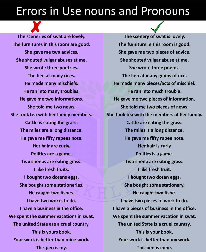 In this blog, we are going to learn errors in Nouns and Pronouns. If you will learn this lesson you will be able to find the mistakes in Nouns and Pronouns.