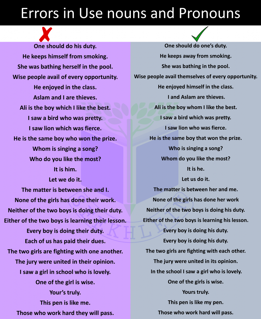 In this blog, we are going to learn errors in Nouns and Pronouns. If you will learn this lesson you will be able to find the mistakes in Nouns and Pronouns.