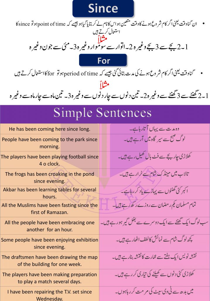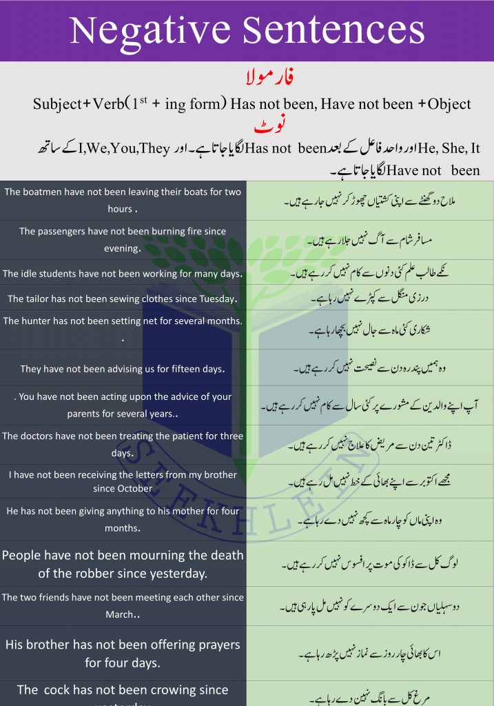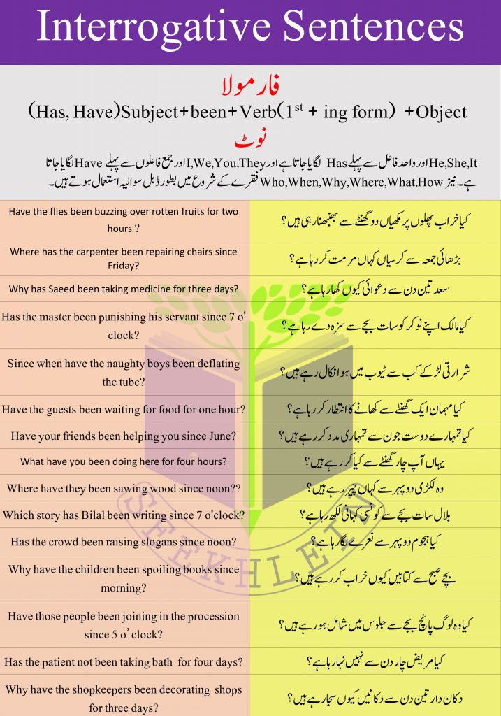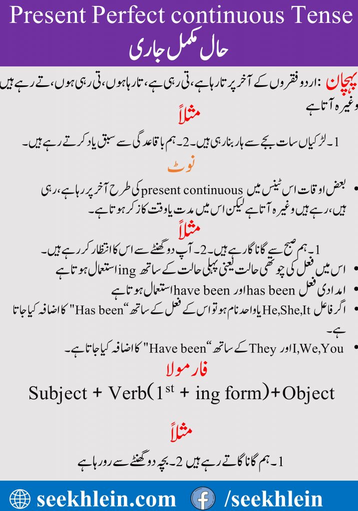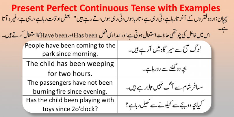 Present perfect Continuous Tense with Urdu to English Examples