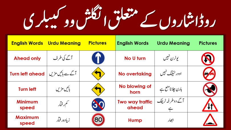 Road And Traffic Signs Vocabulary Words In English And Urdu