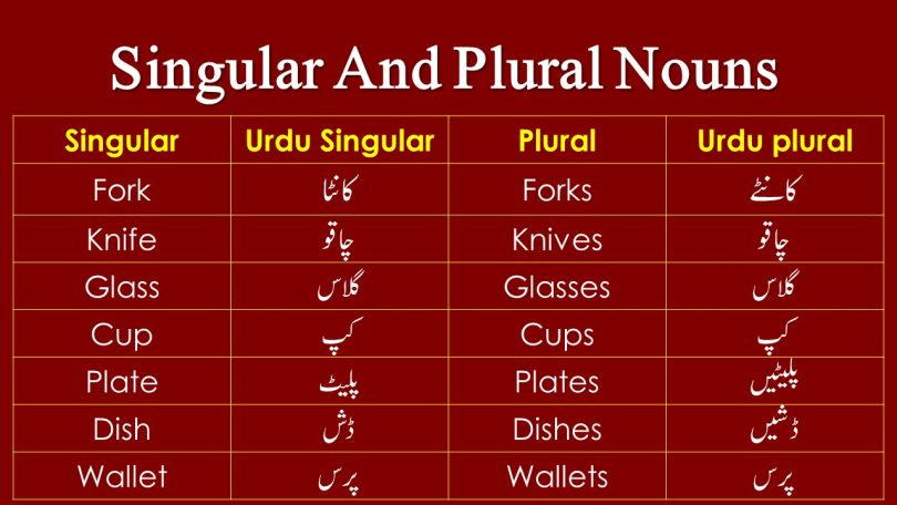 | Singular | Urdu Singular | Plural | Urdu plural |