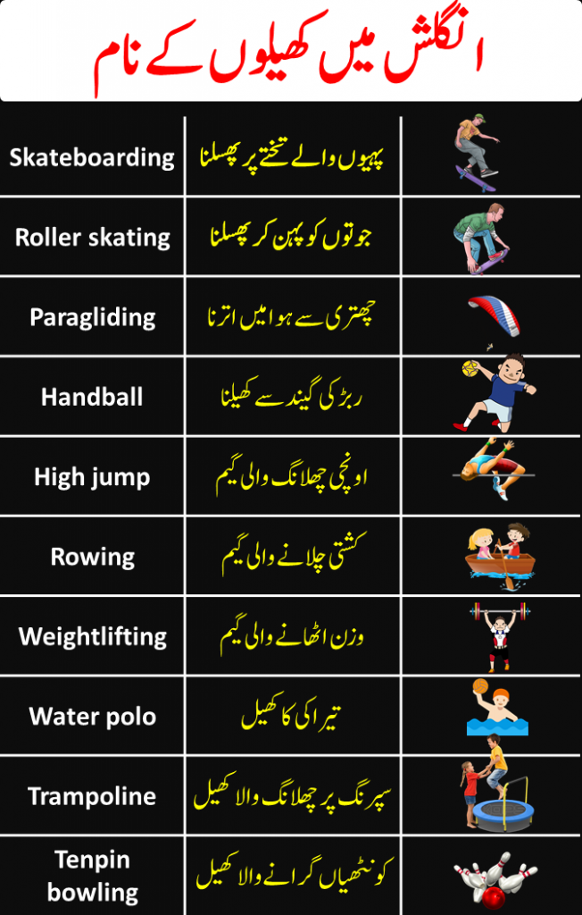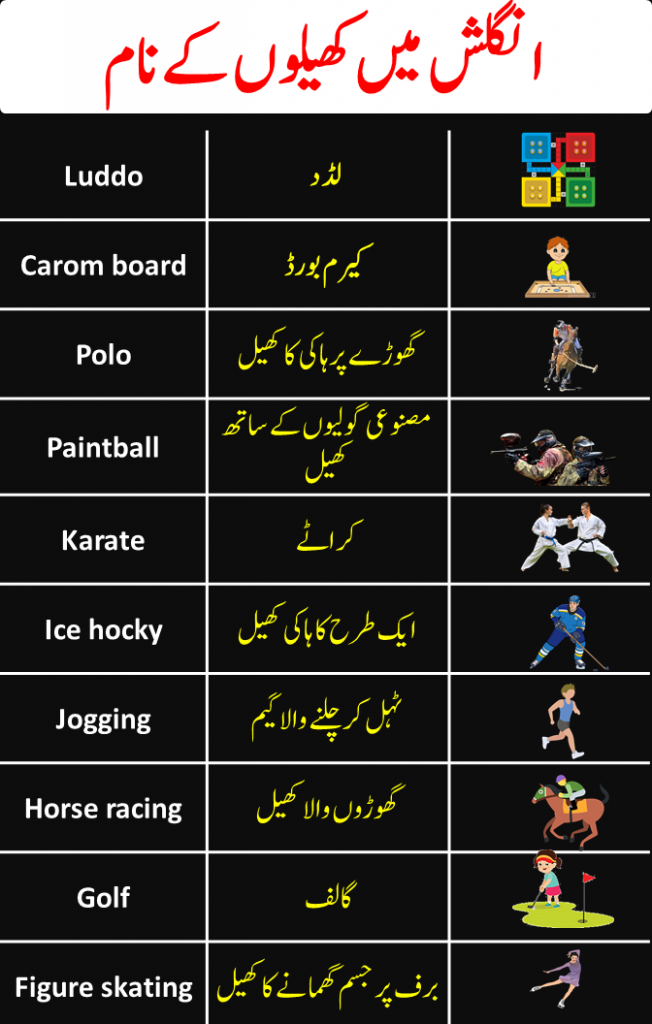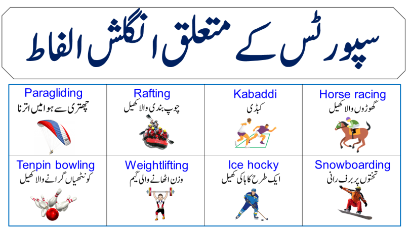Urdu To English Sports Vocabulary Words